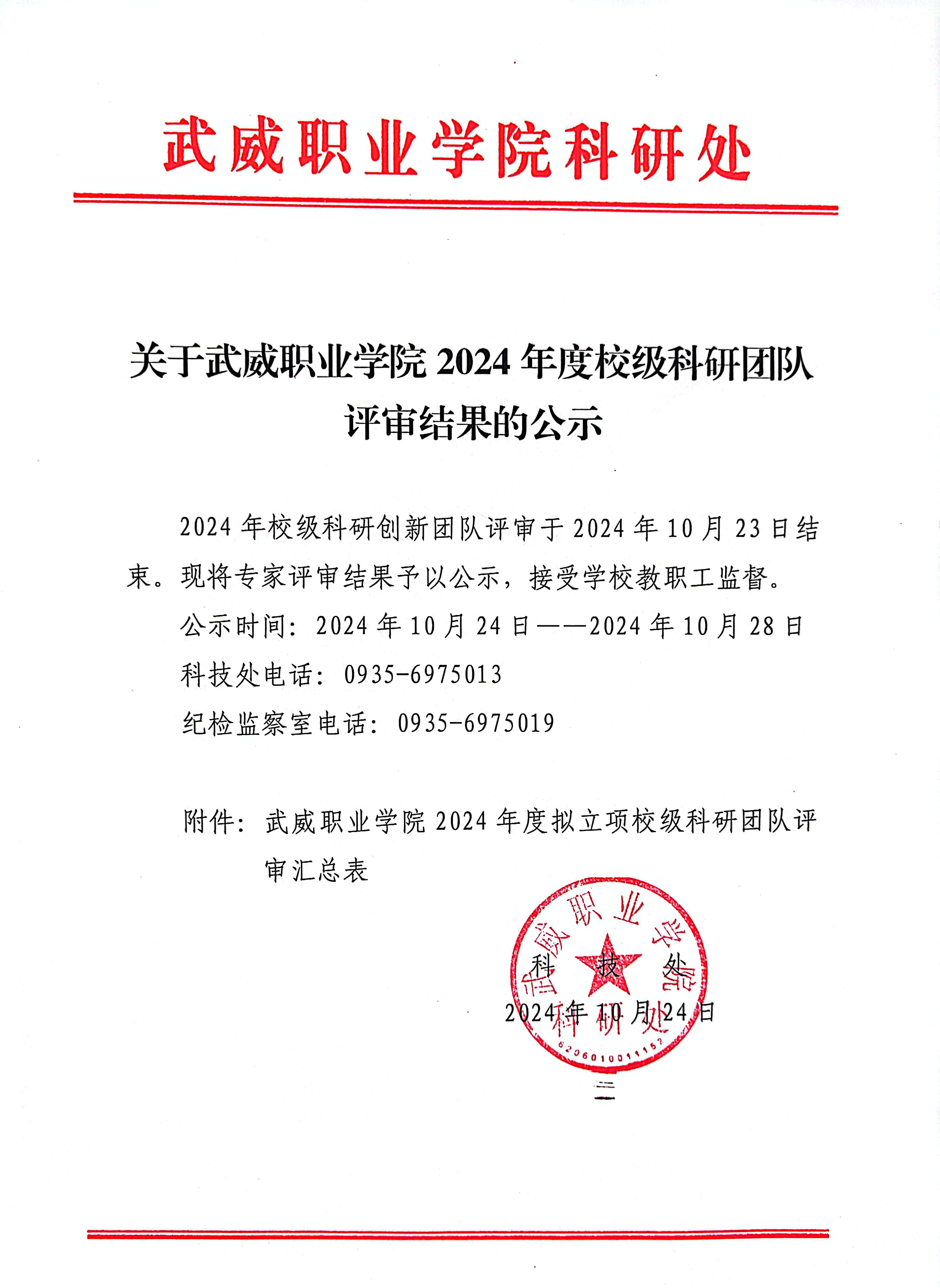關(guān)于武威職業(yè)學(xué)院2024年度校級科研團隊評審結(jié)果的公示