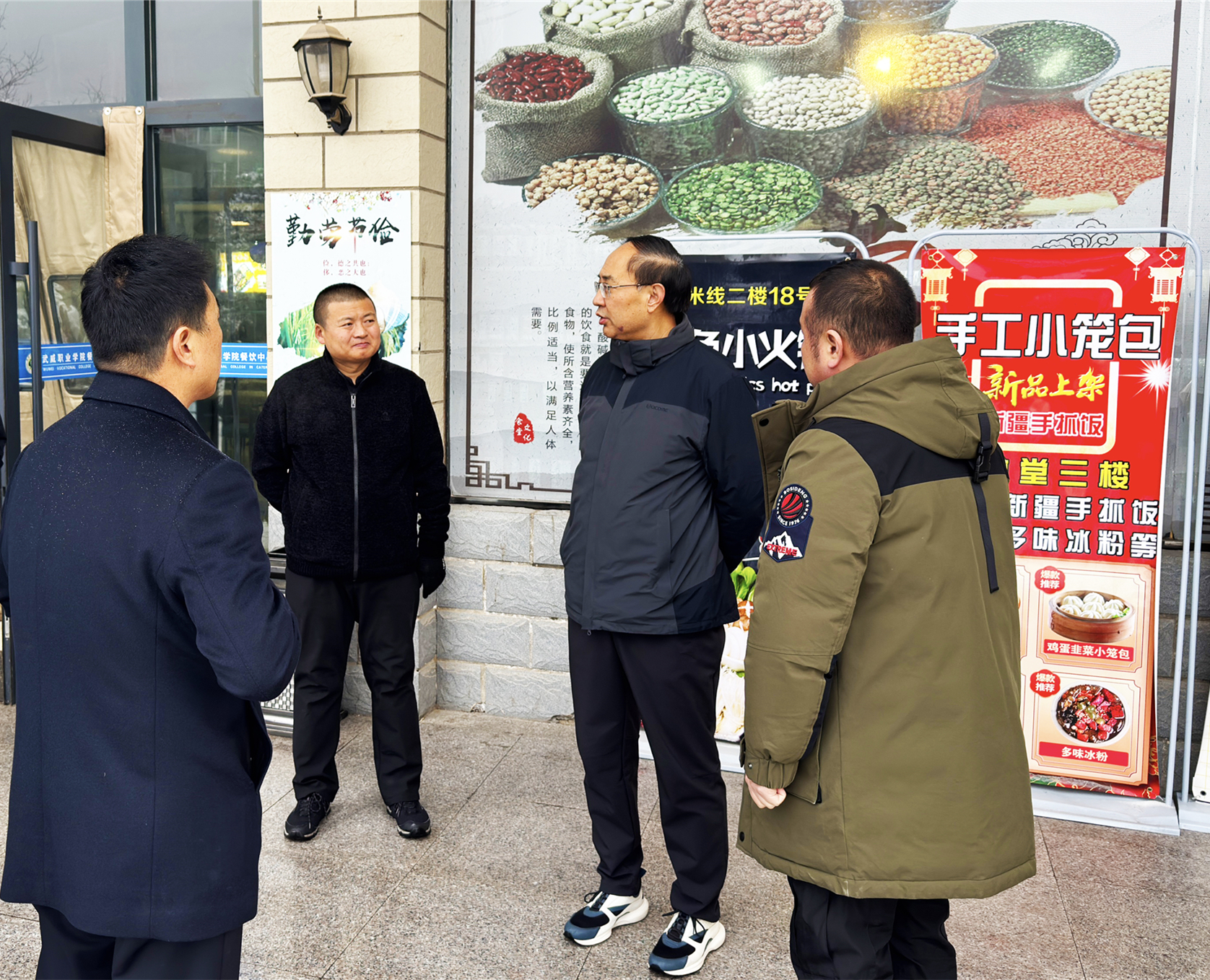 11月24日,河西走廊迎來入冬第一場(chǎng)瑞雪,為切實(shí)做好師生餐飲保障和食品安全,黨委書記王宏深入學(xué)生食堂檢查指導(dǎo),后勤管理處處長(zhǎng)占發(fā)禹及相關(guān)負(fù)責(zé)同志陪同檢查。