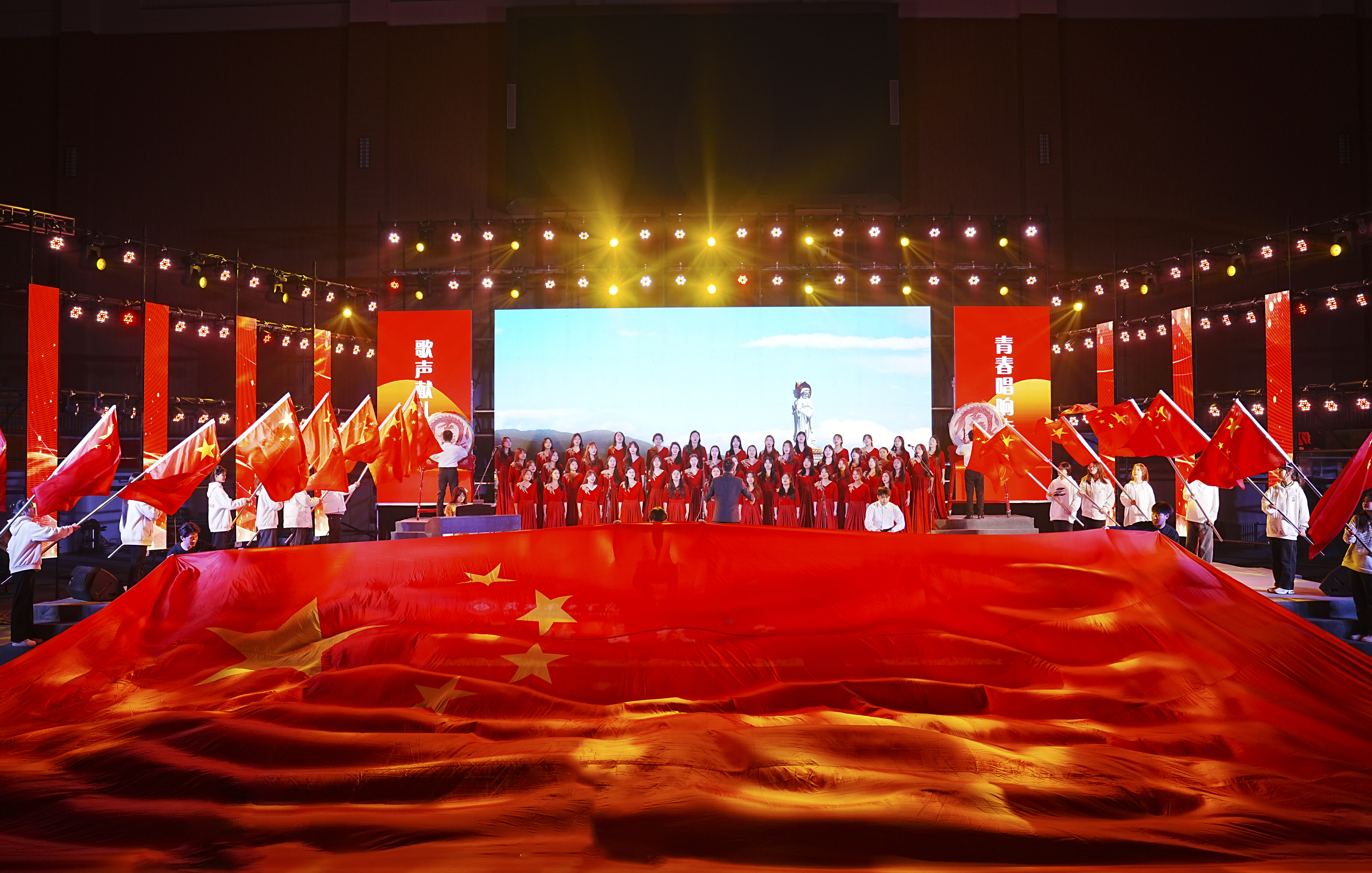 歌聲獻禮時代,青春唱響未來。12月26日晚,學(xué)?!皯c元旦”合唱比賽暨第十九屆校園歌手大賽在體育館成功舉辦。學(xué)校黨委書記王宏出席活動并為獲獎集體和個人頒獎,黨委委員、副校長王守云出席活動,各二級學(xué)院和相關(guān)部門負責(zé)人與2000余名師生現(xiàn)場觀看了比賽。