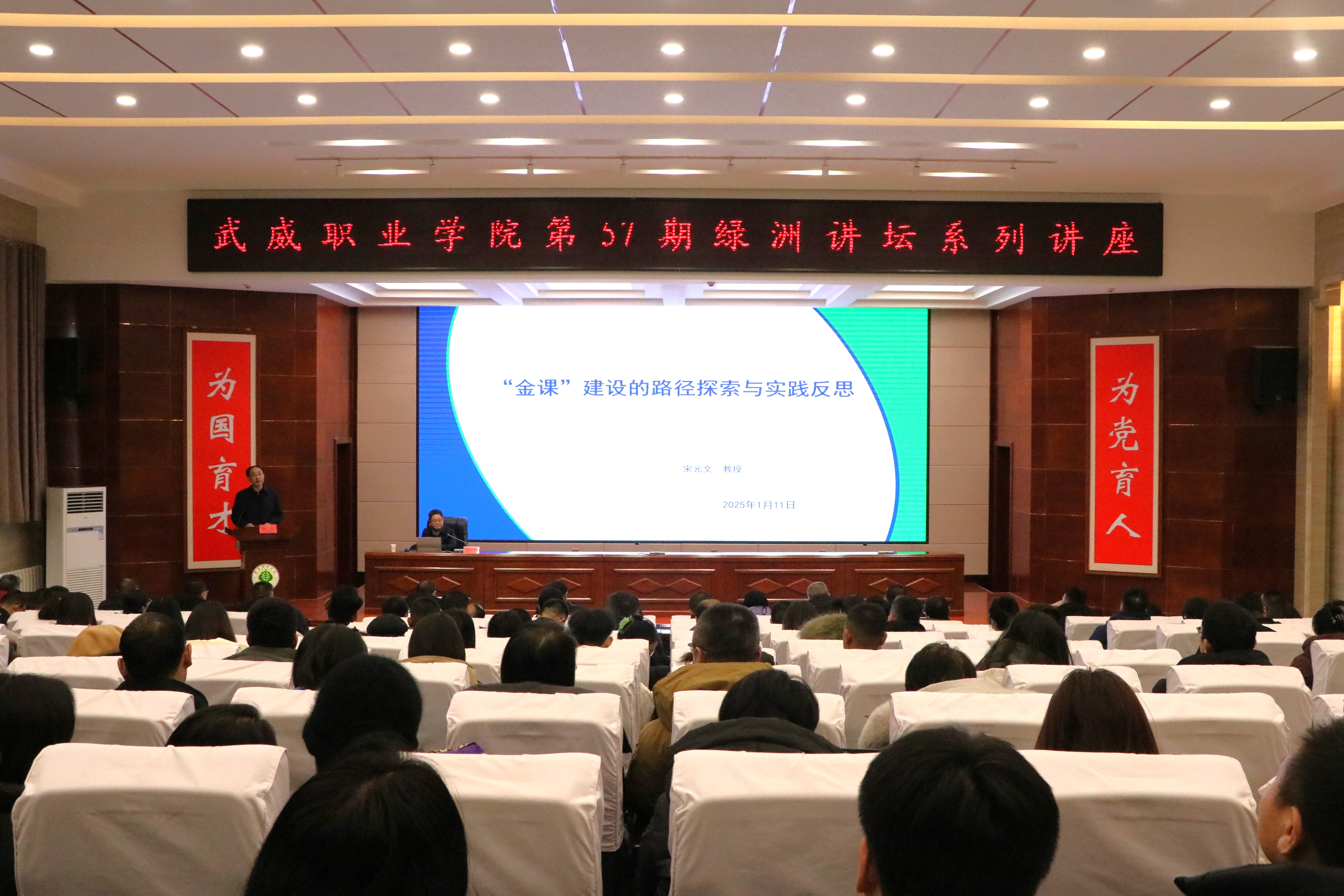 1月11日下午,學校特邀原蘭州資源環(huán)境職業(yè)技術大學副校長宋元文教授在菁英廳作了《“金課”建設的實踐反思與路徑探索》主題講座。講座由學校黨委書記王宏主持,學校領導、中層管理干部、教研室主任及教師代表共210余人參加。