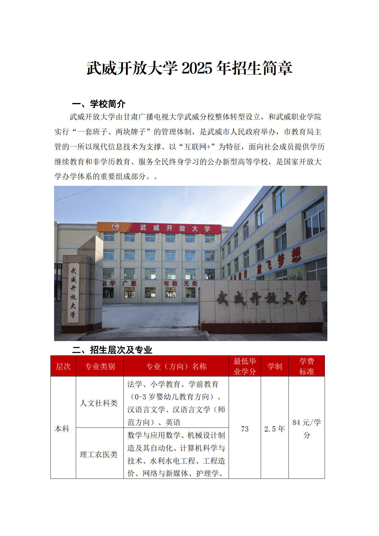 武威開放大學(xué)2025年招生簡章
