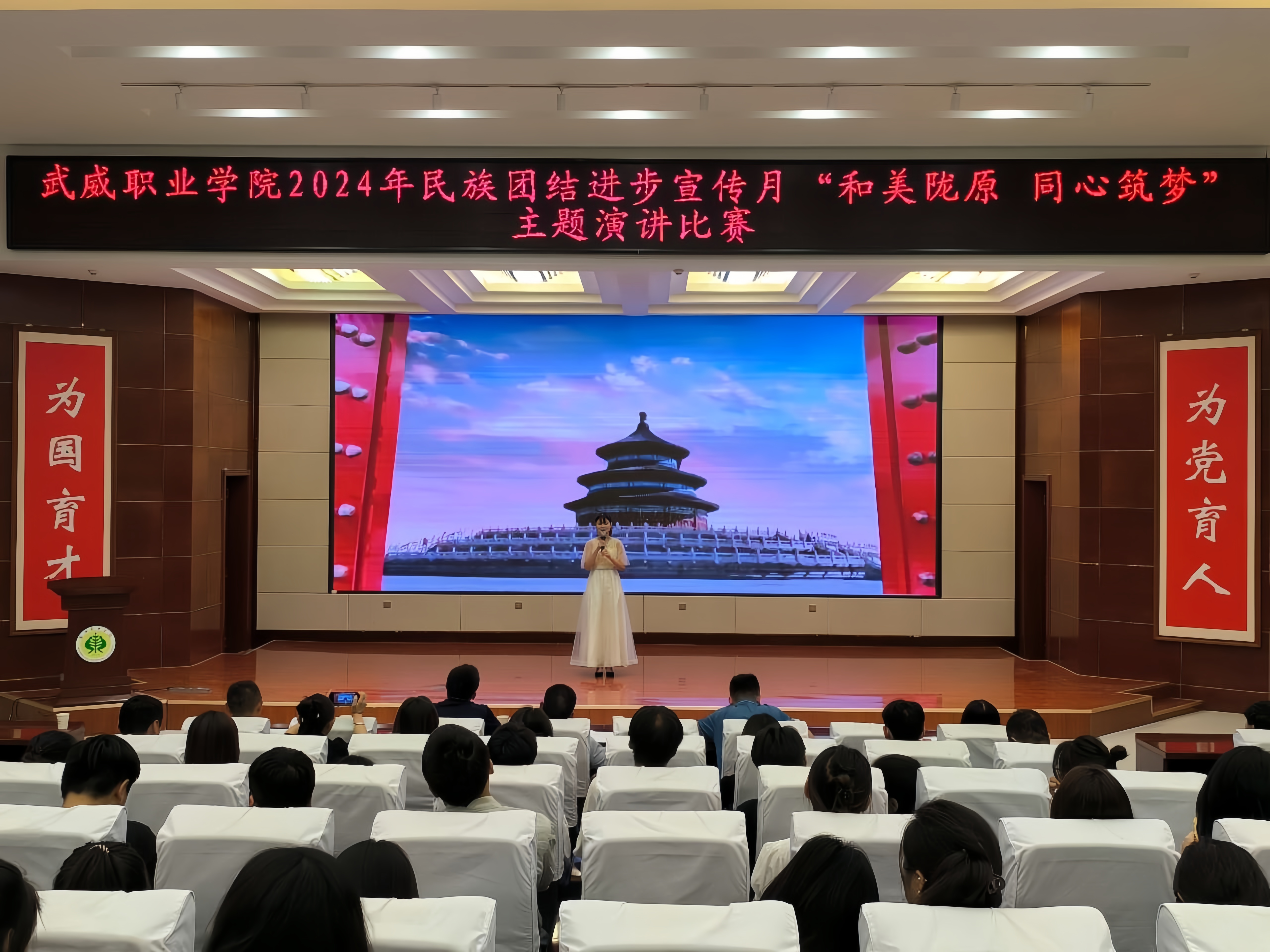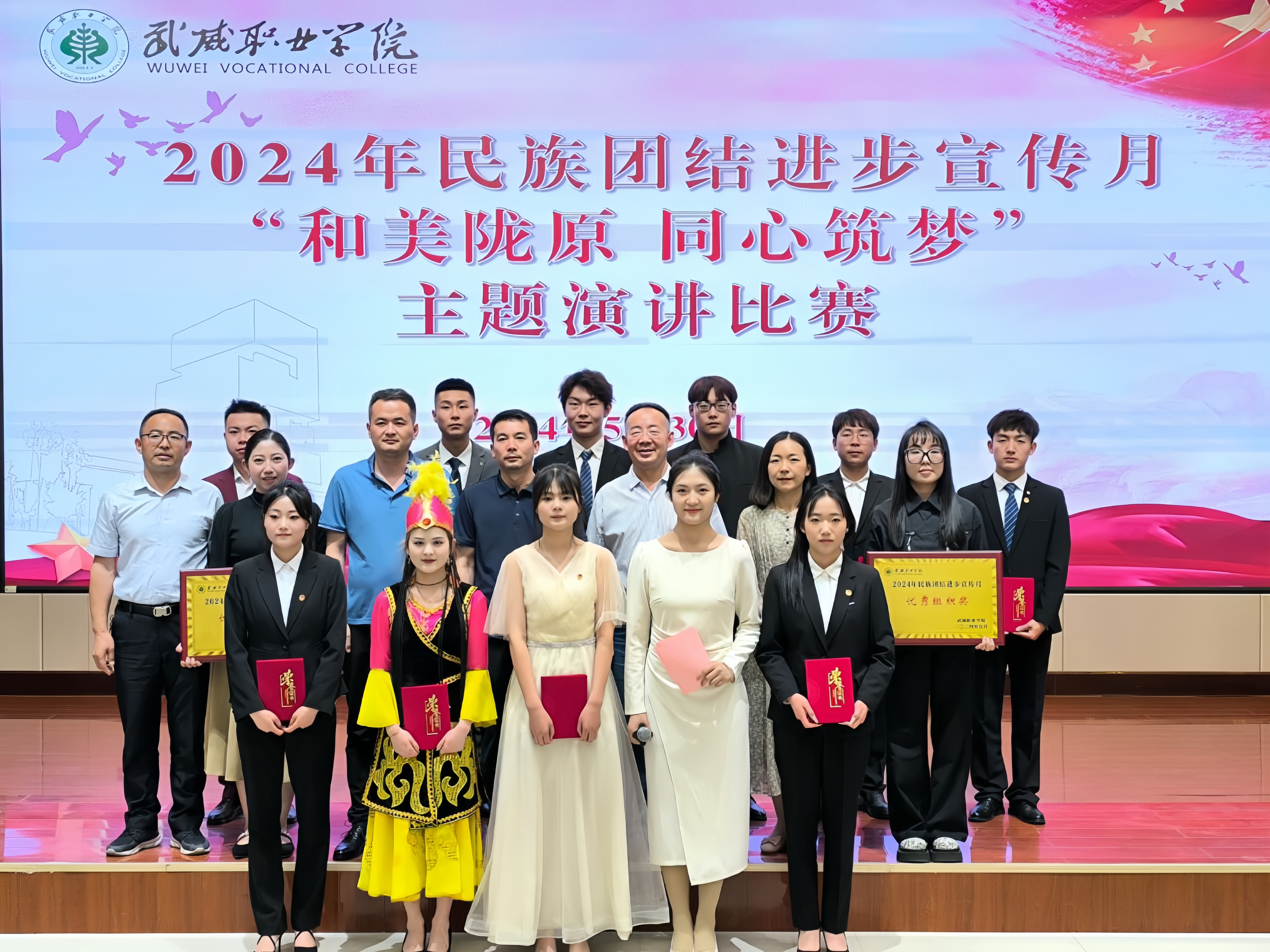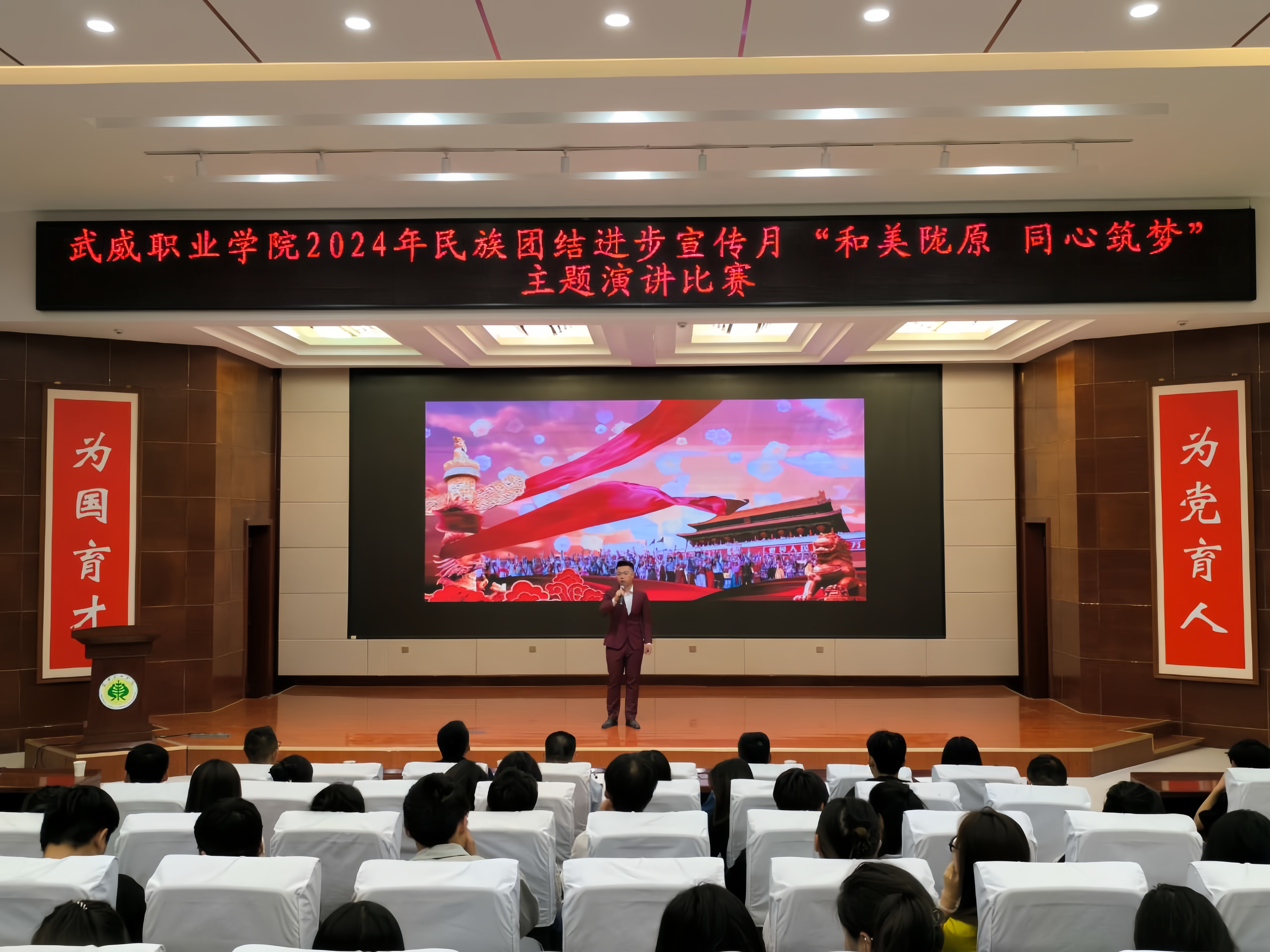 為持續(xù)深化民族團(tuán)結(jié)進(jìn)步教育,進(jìn)一步引導(dǎo)各族師生牢固樹立“四個(gè)與共”的共同體理念。學(xué)校于5月30日晚在學(xué)生發(fā)展中心菁英廳舉辦了“和美隴原 同心筑夢”主題演講比賽。200余名師生參加活動(dòng)。