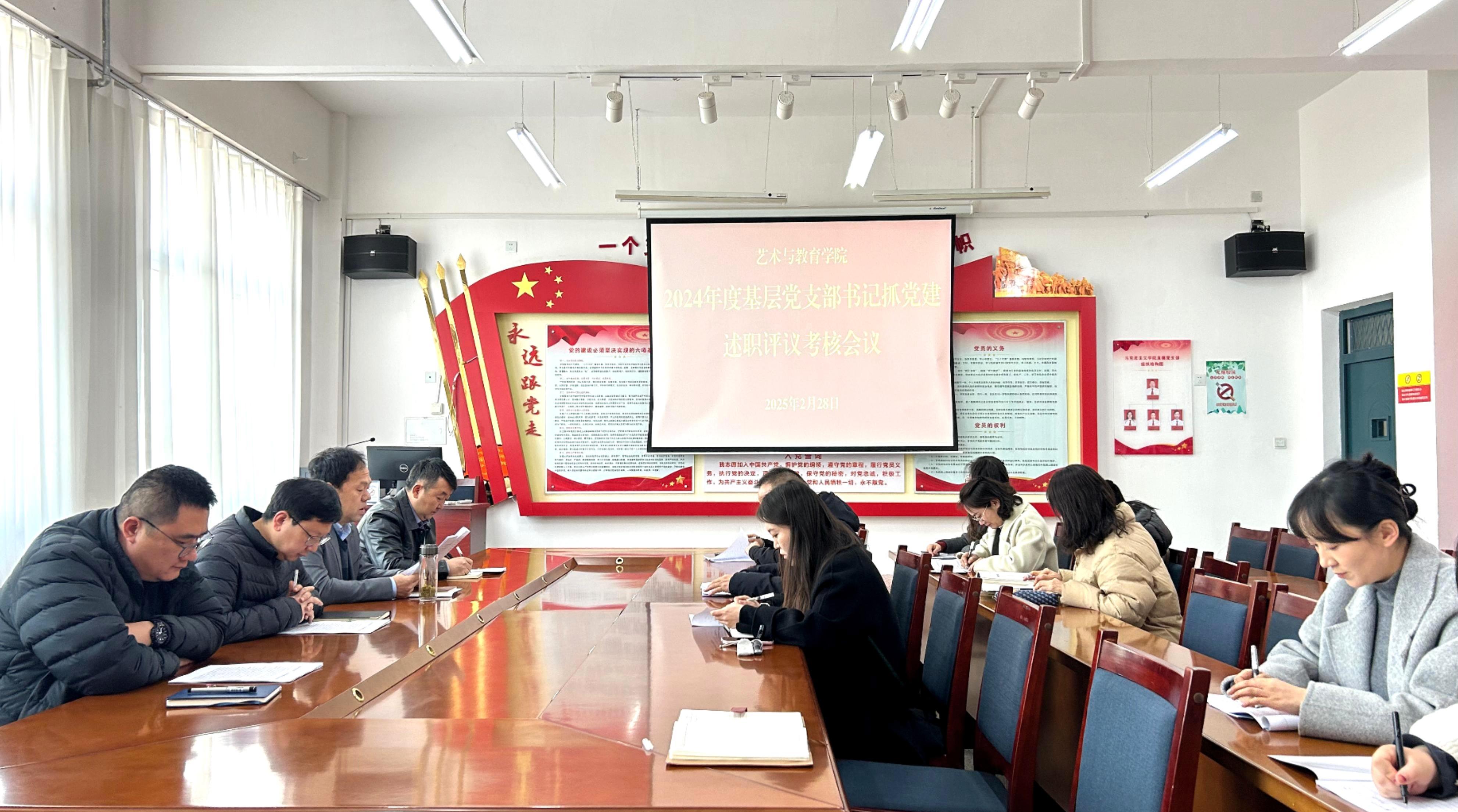 為深入學(xué)習(xí)貫徹習(xí)近平新時(shí)代中國特色社會(huì)主義思想和黨的二十屆三中全會(huì)精神,全面落實(shí)新時(shí)代黨的建設(shè)總要求,2月28日下午,藝術(shù)與教育學(xué)院2024年度基層黨支部書記抓黨建述職評議考核大會(huì)在勵(lì)勤樓209會(huì)議室召開。學(xué)院領(lǐng)導(dǎo)班子成員、各黨支部書記及委員、黨員代表出席會(huì)議。會(huì)議通過現(xiàn)場述職、民主評議等環(huán)節(jié)全面檢視基層黨建工作成效,黨總支書記王政主持會(huì)議并作總結(jié)講話。