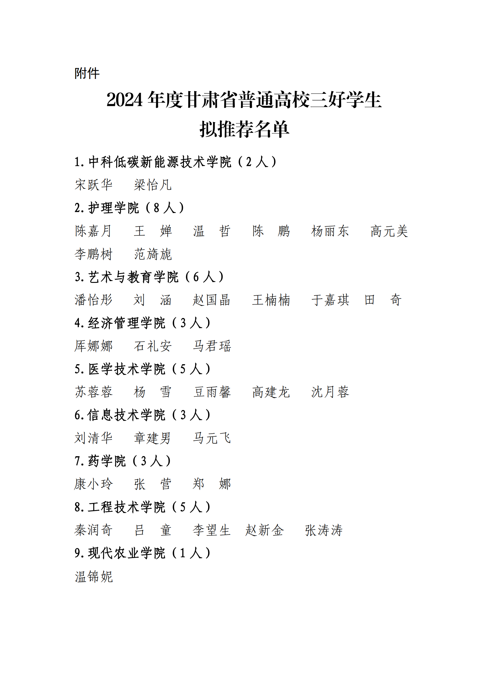 關(guān)于2024年度甘肅省普通高校三好學(xué)生擬推薦人選的公示