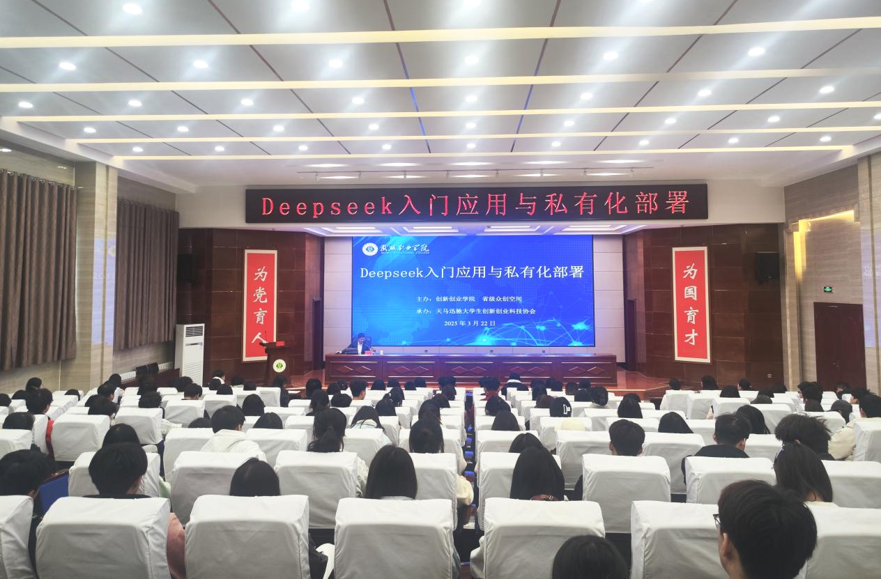 為深化校企合作、推動人工智能技術(shù)在職業(yè)教育與創(chuàng)新實踐中的應(yīng)用,3月22日,天馬訊馳大學(xué)生創(chuàng)新創(chuàng)新科技協(xié)會特邀武威市大數(shù)據(jù)公司工程師劉曉寶,開展了“DeepSeek入門應(yīng)用與私有化部署”專題培訓(xùn),學(xué)校200余名師生參加了培訓(xùn)。