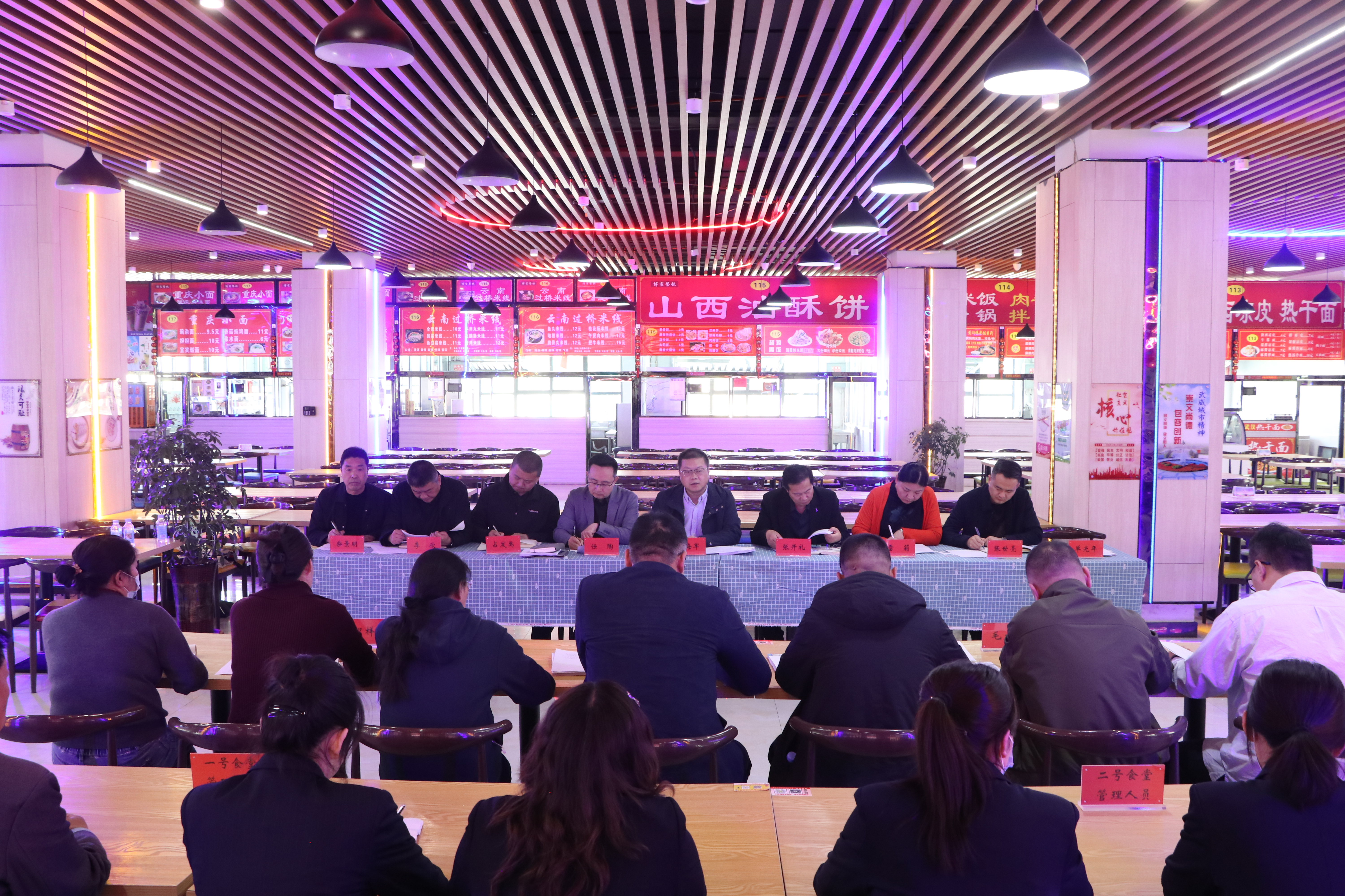 李海軍作總結(jié)講話,他代表學校對每一位默默奉獻、辛勤付出的餐飲公司管理者、服務者表示誠摯的感謝。李海軍指出,本次會議的核心目標是堅持以習近平新時代中國特色社會主義思想為指導,堅決貫徹落實食品安全“四個最嚴”要求,堅持目標導向和問題導向,采取有力有效措施,消除校園食品安全風險隱患,建立健全制度機制,提升餐飲服務質(zhì)量和水平,切實保障食品安全。一是要提高思想認識,樹牢食品安全底線思維;二是要嚴把采購關(guān)口,加強食堂日常監(jiān)管;三是要強化員工教育培訓,有力提升服務水平;四是要加大病媒生物防制,打造安全衛(wèi)生就餐環(huán)境;五是要加強飯菜質(zhì)量價格監(jiān)管,保障師生切身權(quán)益;六是要加強食品安全問題排查,嚴格落實整改工作。