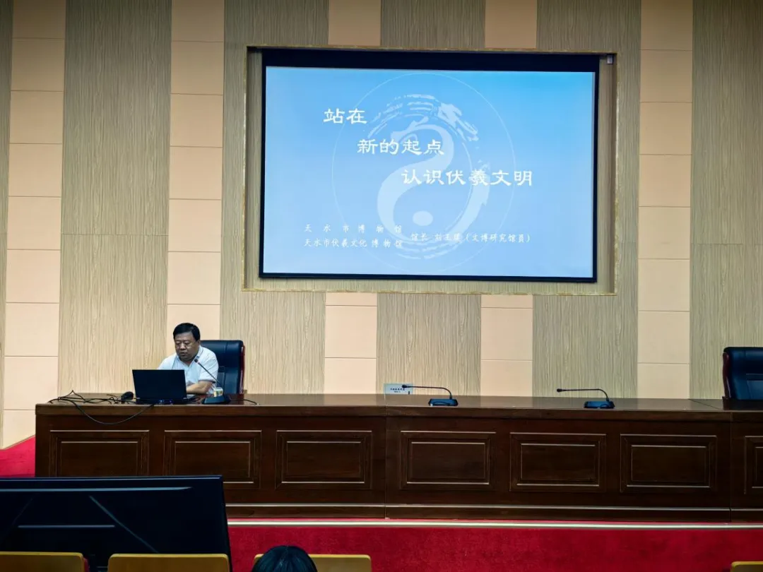 講座中,劉玉璞以習近平總書記考察天水伏羲廟的重要講話為切入點,圍繞“中華文明起源”“鑄牢中華民族共同體意識”“實現(xiàn)中華民族偉大復興”三大維度展開,系統(tǒng)梳理了伏羲文化研究的最新成果,指出伏羲文明是中華文明的重要源頭,其文化符號深刻體現(xiàn)了中華民族早期先民的宇宙觀與價值觀。通過考古發(fā)現(xiàn)與文獻互證,他闡釋了伏羲文化在推動多民族融合、促進文化認同中的歷史作用,并強調伏羲文化在當代的價值不僅在于學術研究,更需轉化為增強民族文化自信、服務社會發(fā)展的精神動力。這場講座以生動的語言和詳實的例證,為聽眾勾勒出一部從史前文明到當代傳承的伏羲文化發(fā)展史,現(xiàn)場反響熱烈。