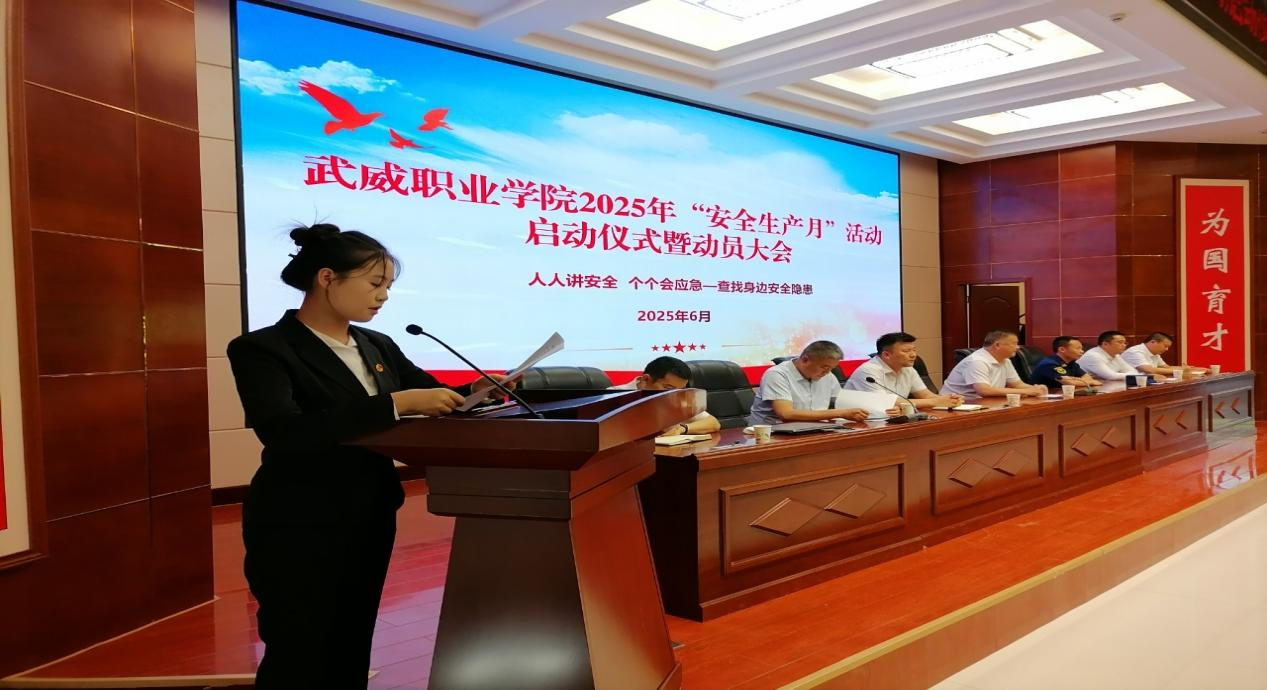 6月16日下午,“安全生產月”啟動儀式暨動員大會在學校菁英廳舉行。學校黨委委員、副校長王守云作動員講話,強調校園安全是辦學治校的生命線,要求全校師生以高度的責任感積極參與各項活動,將安全理念內化于心、外化于行。安全保衛(wèi)處處長李欣對活動作了詳細安排。學生代表王盼發(fā)出倡議,號召同學們自覺學習安全知識、遵守安全規(guī)范、擔當安全責任。最后,師生代表在印有活動主題的承諾墻上鄭重簽名,表達踐行安全的堅定決心。