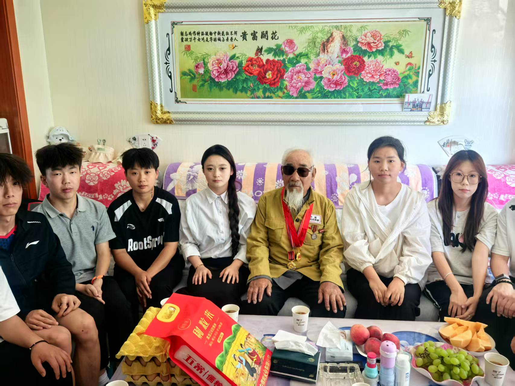 現(xiàn)居住于康寧新村八組、已93歲高齡的張克錄爺爺是參加過抗美援朝的退役老英雄。9月25日,堅(jiān)持駐村4年的靳東生老師與學(xué)?!八{(lán)天愛心協(xié)會”指導(dǎo)教師、青年大學(xué)生,帶著學(xué)校的牽掛、問候與崇敬,一起到張克錄爺爺家中,為老人送上關(guān)愛祝福,開展了一場“聆聽英雄故事、傳承紅色基因”的特別走訪、慰問活動。張克錄爺爺精神矍鑠,身著掛有勛章的志愿軍軍裝,向師生們講述當(dāng)年志愿軍戰(zhàn)士冒著凜冽寒風(fēng)跨過鴨綠江,爬冰臥雪英勇戰(zhàn)斗的生動事跡;驚心動魄的戰(zhàn)斗故事,在老人樸實(shí)無華的語言中顯得格外感人,在場師生仿佛穿越時(shí)空,親眼目睹了志愿軍戰(zhàn)士們用血肉之軀筑起的鋼鐵長城;說到動情處,老人和師生們的眼眶已經(jīng)濕潤,師生心靈受到了深刻洗禮、愛國情懷得到了高度升華。