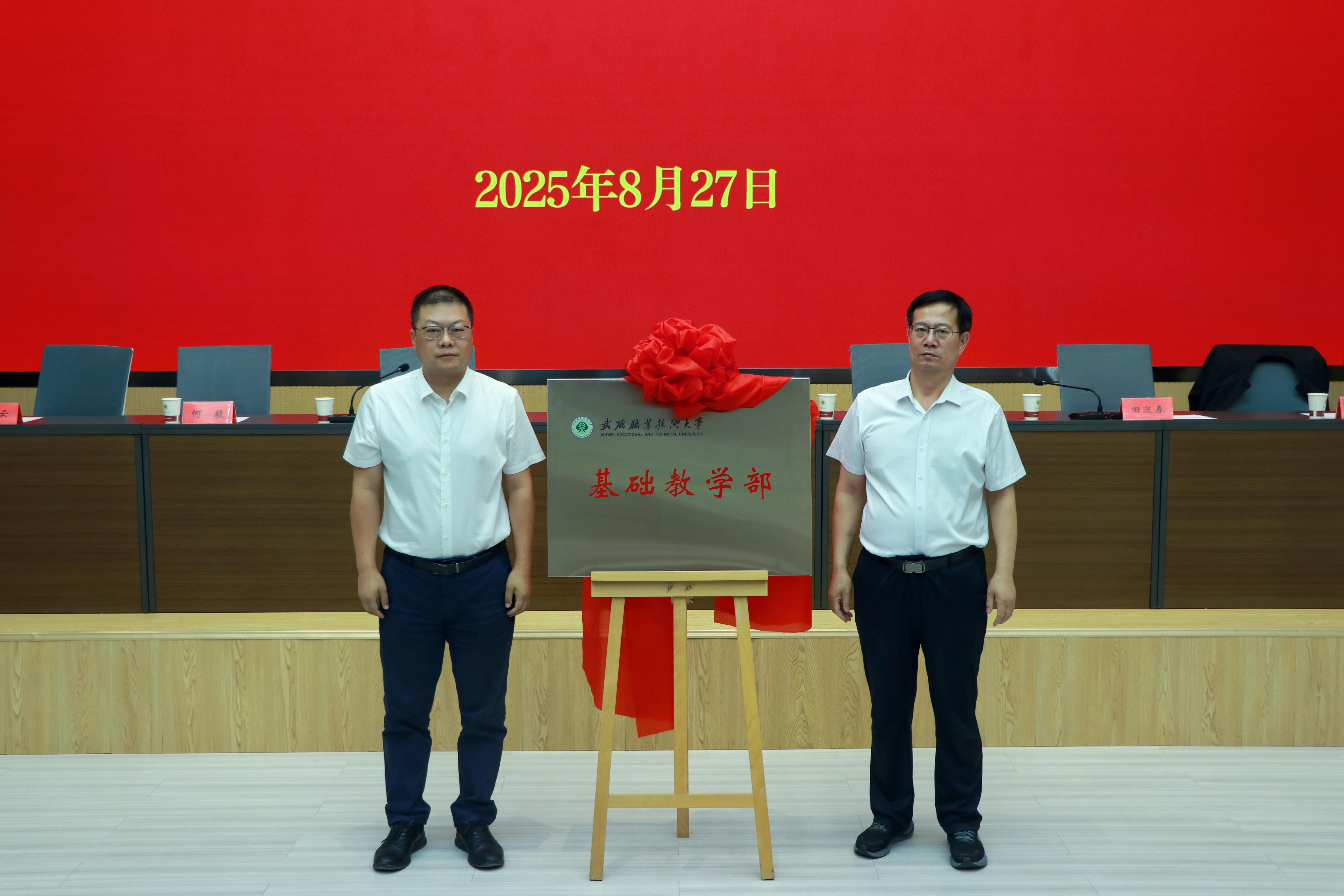 在全場熱烈的掌聲中,李海軍與張開禮共同為“基礎(chǔ)教學(xué)部”揭牌,標(biāo)志著武威職業(yè)技術(shù)大學(xué)基礎(chǔ)教學(xué)部正式組建成立。