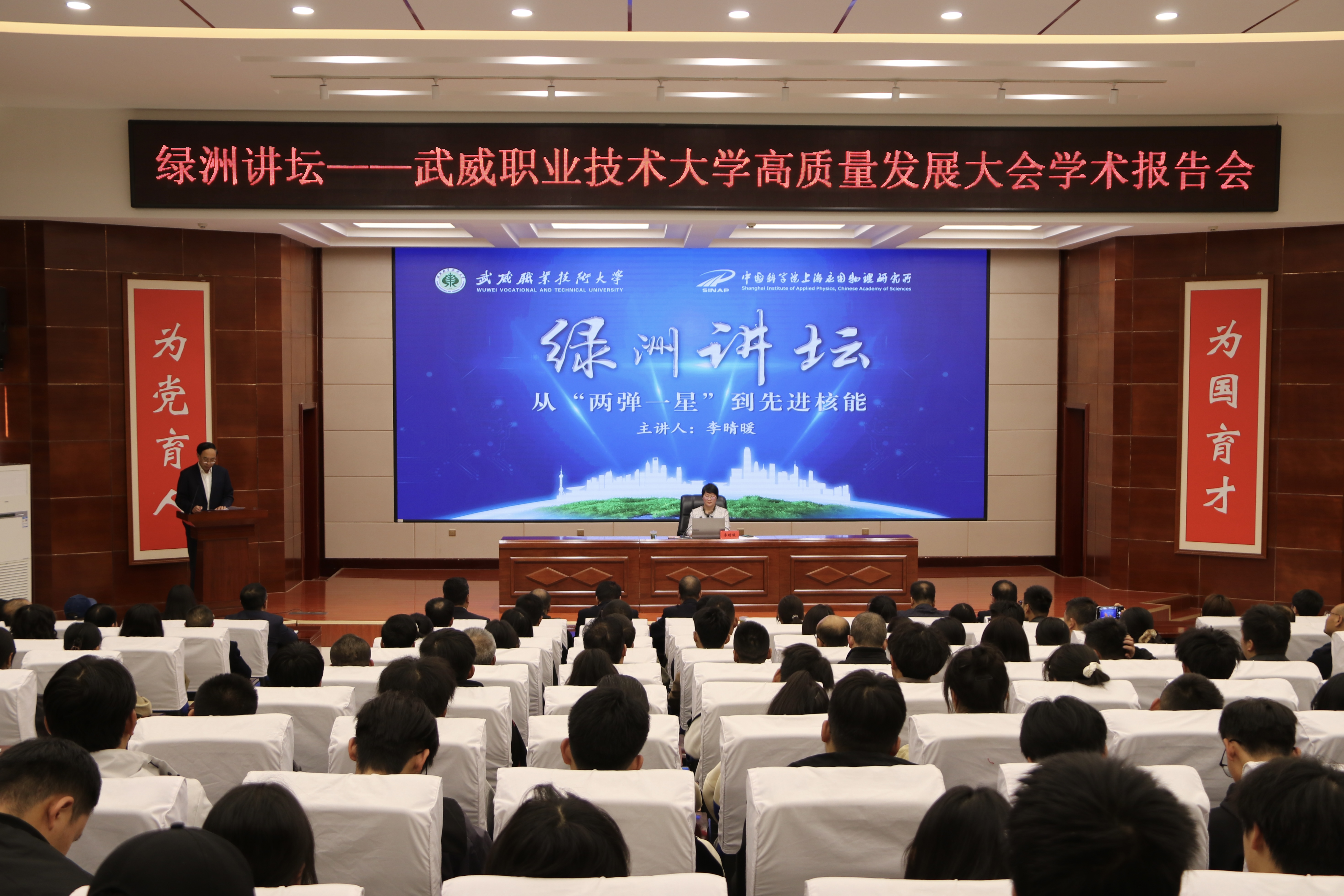 10月12日下午,中國科學院上海應(yīng)用物理研究所黨委書記、副所長李晴暖研究員,受邀做客武威職業(yè)技術(shù)大學“綠洲講壇”,以《從“兩彈一星”到先進核能》為題,為該校220余名師生代表帶來專題學術(shù)報告。