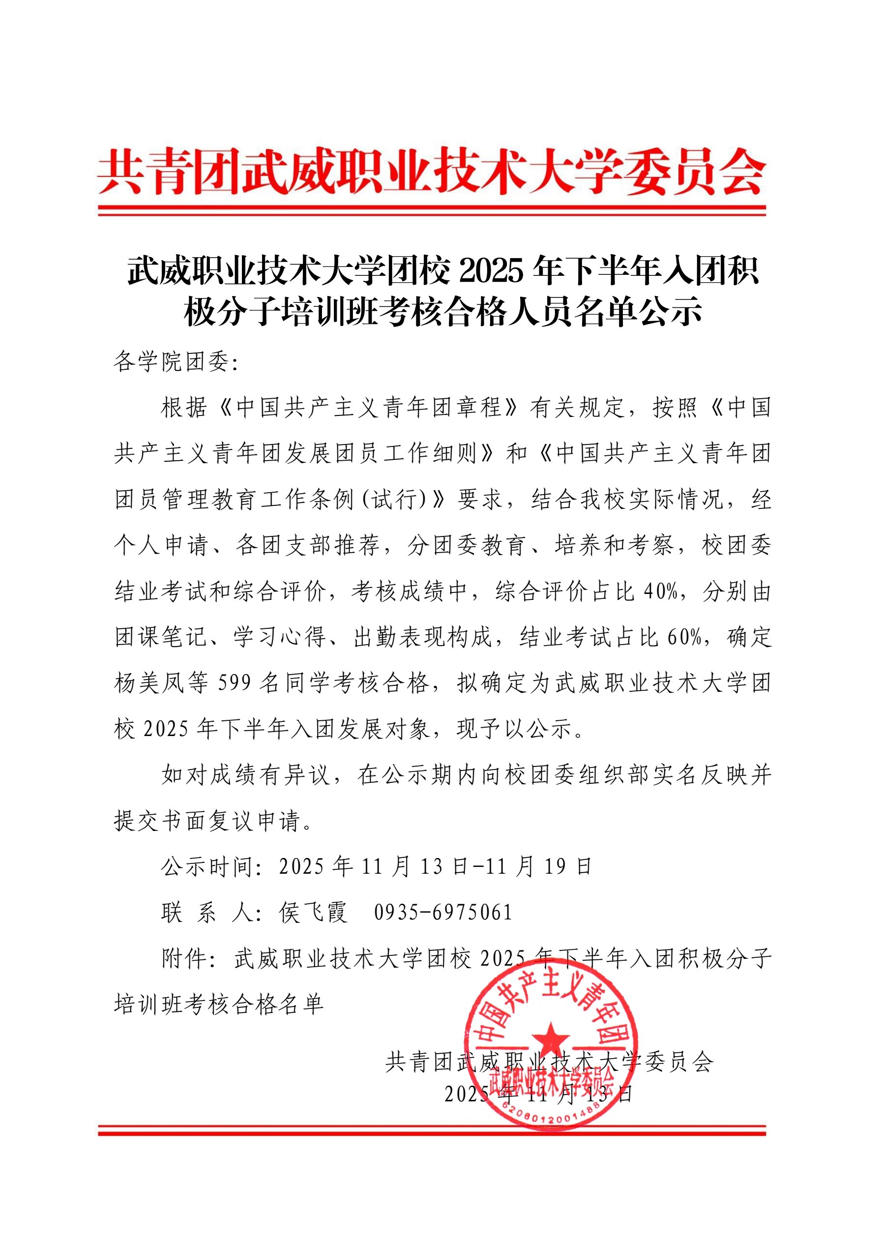 武威職業(yè)技術大學團校2025年下半年入團積極分子培訓班考核合格人員名單公示