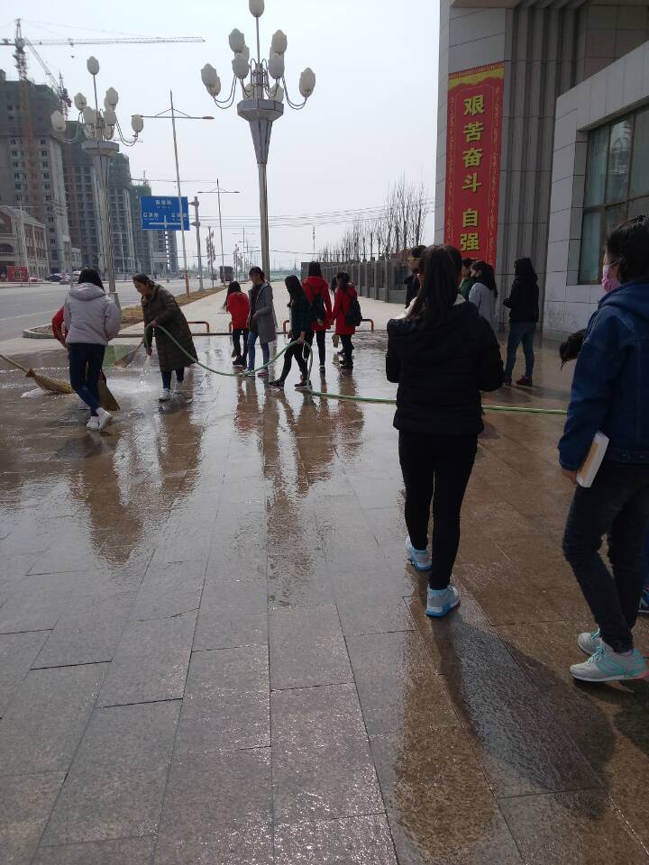 接學院學生工作處關(guān)于校園環(huán)境衛(wèi)生集中清理沖洗的通知,3月15日下午,人文藝術(shù)教育系積極響應,各班班主任跟班組織學生,具體指導學生正確清理沖洗了區(qū)域衛(wèi)生.徹底清理了所屬環(huán)境衛(wèi)生區(qū)域內(nèi)的草坪和樹溝里的垃圾.殘枝敗葉,對所屬環(huán)境衛(wèi)生區(qū)域內(nèi)的路面、地面、樓周圍、墻裙、一樓窗臺、樹木、垃圾箱、果皮箱、宣傳欄等設(shè)施設(shè)備進行了全面徹底沖洗。