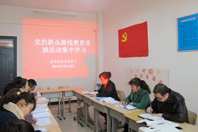 14年3月15日,農(nóng)業(yè)經(jīng)濟(jì)系組織全體黨員及教師進(jìn)行了黨的群眾路線教育實(shí)踐活動(dòng)集中學(xué)習(xí)。依據(jù)學(xué)習(xí)安排主要對(duì)《黨的群眾路線教育實(shí)踐活動(dòng)學(xué)習(xí)文件選編》、《厲行節(jié)約、反對(duì)浪費(fèi)----重要論述摘編》、《論群眾路線----重要論述摘編》等內(nèi)容進(jìn)行了學(xué)習(xí)。