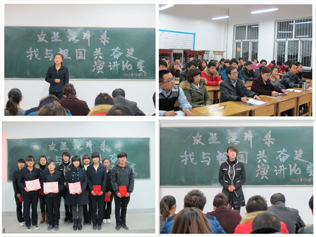 為紀(jì)念“12.9”學(xué)生愛國運(yùn)動78周年,大力弘揚(yáng)愛國主義精神,進(jìn)一步增強(qiáng)廣大青年學(xué)子社會責(zé)任感與歷史使命感,展現(xiàn)我系學(xué)生朝氣蓬勃,奮發(fā)進(jìn)取的精神面貌,我系舉辦第三屆“我與祖國共奮進(jìn)”主題演講比賽。農(nóng)業(yè)經(jīng)濟(jì)系主任晏素珍、黨總支負(fù)責(zé)人蔡飛及系部教師觀看演講比賽并點(diǎn)評。