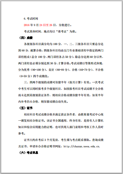 6.請各教學(xué)系將《甘肅省2016下半年全國計算機等級考試公告》等信息傳達到每個考生。