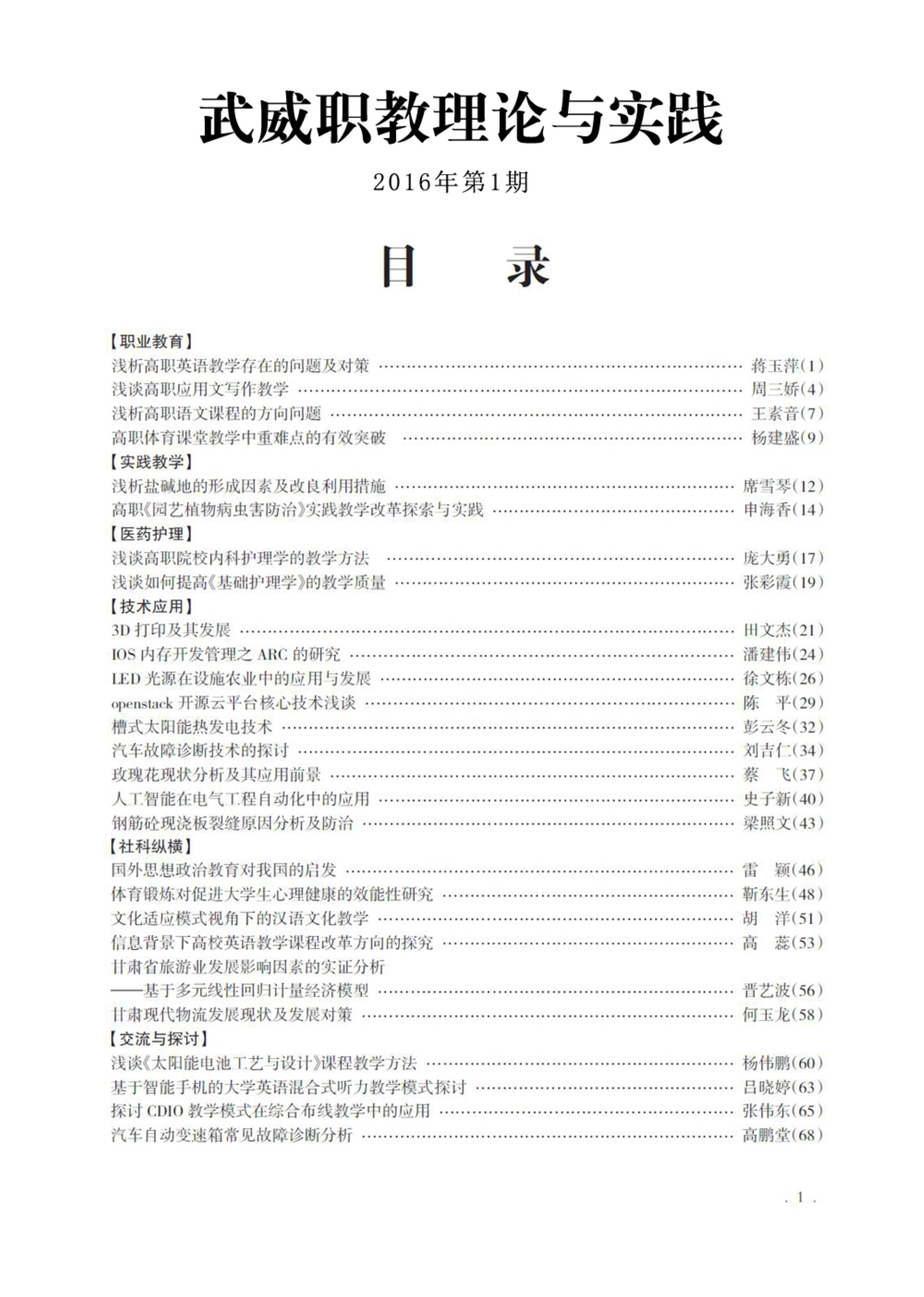 2016年第1期《武威職教理論與實(shí)踐》