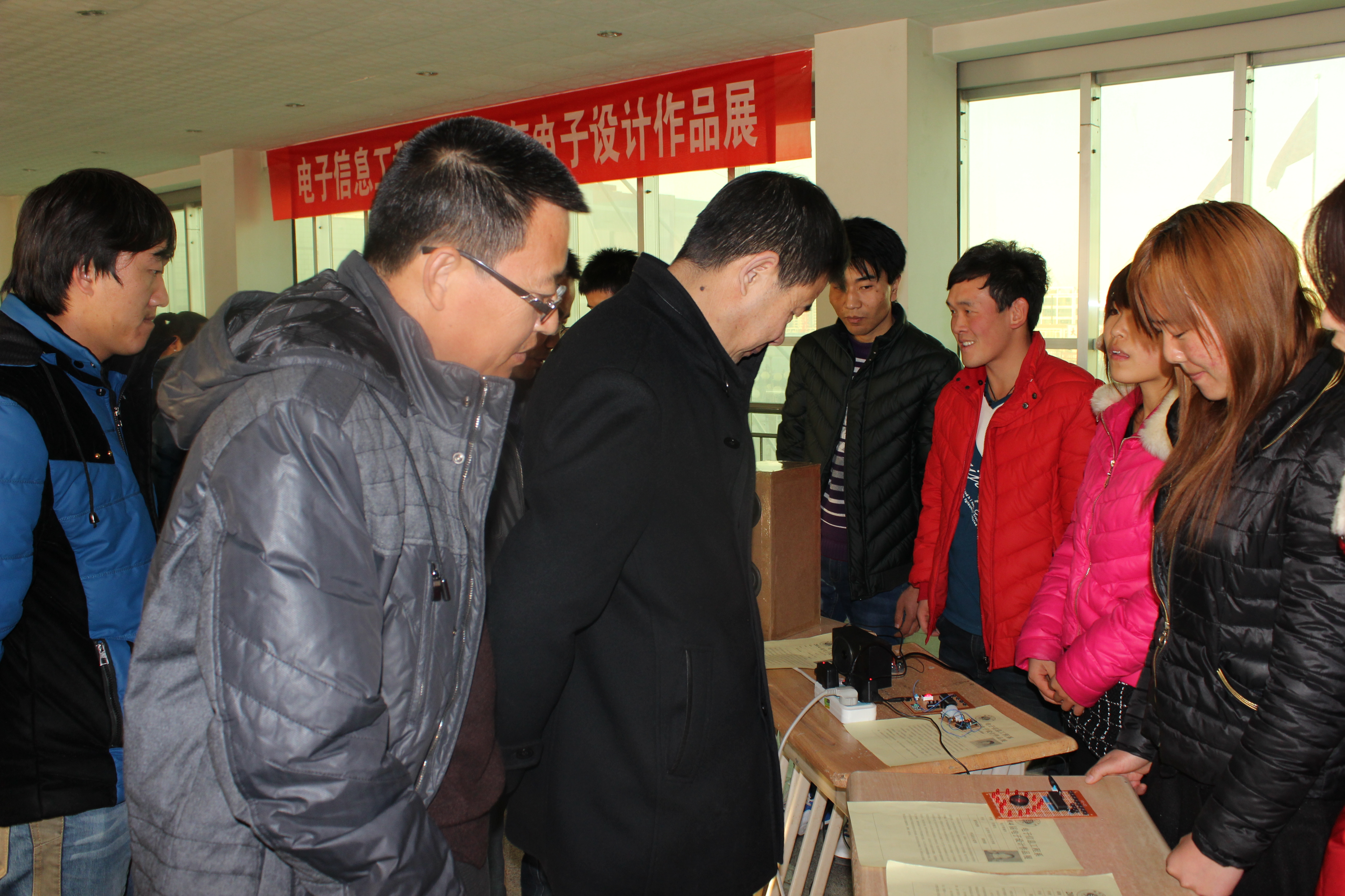 為豐富大學生課余生活,使更多的同學了解電子,走進電子,培養(yǎng)學生對電子產(chǎn)品的興趣及實際操作能力,近日,我系成功舉辦電子制作與設(shè)計作品展。學院翟存祥副院長,教務(wù)處魏潤明處長,電信系蔣偉主任、張伯成書記蒞臨展區(qū)詳細詢問了電子作品設(shè)計與制作情況。