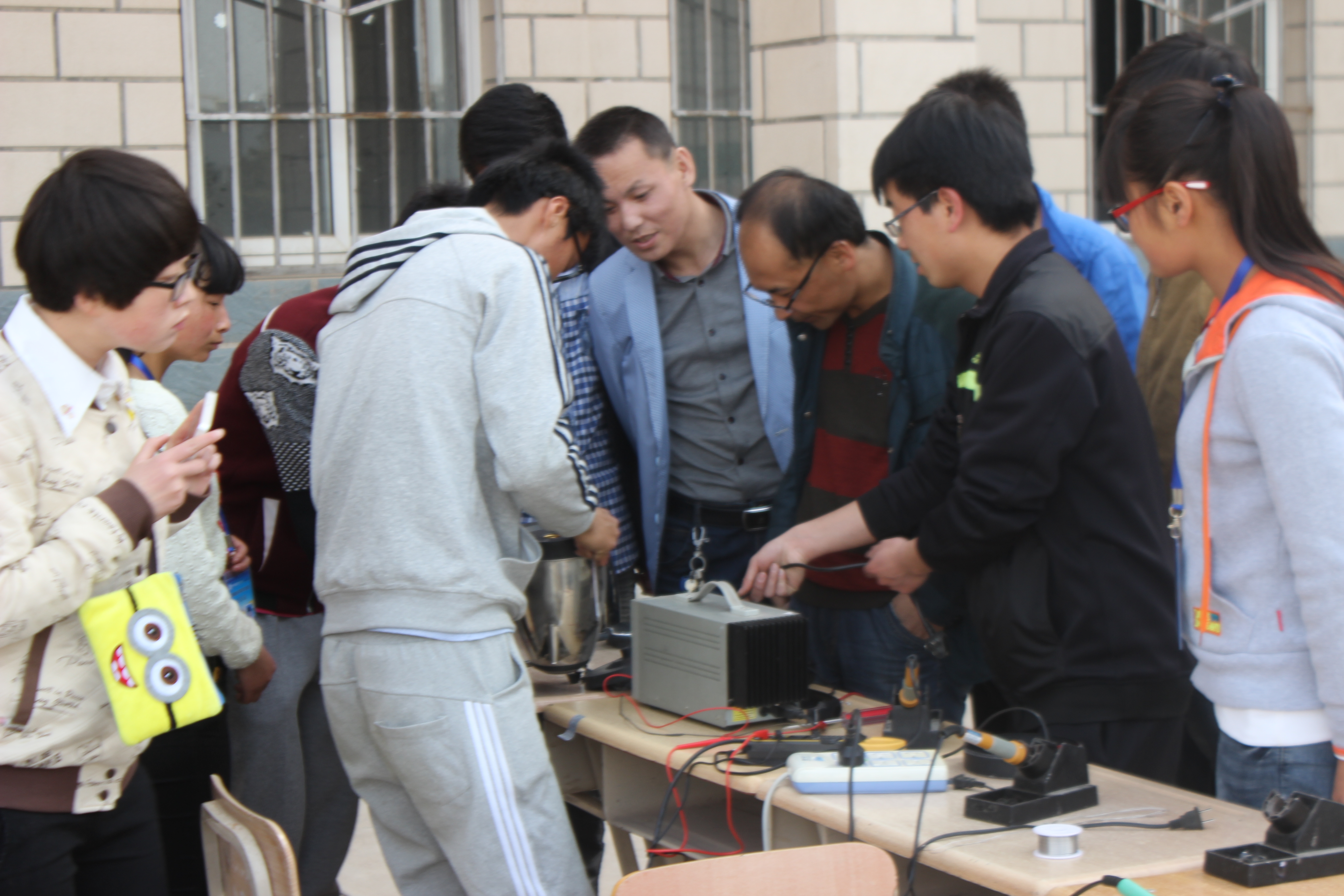 為引導廣大團員青年積極參與青年志愿活動,發(fā)揚雷鋒精神,弘揚民族精神。4月15日至17日電子信息工程系小牛頓電子協(xié)會、青年志愿者協(xié)會在學院尚德樓北側廣場舉辦了“義務維修”活動。小牛頓電子協(xié)會結合協(xié)會自身特色,運用所學的專業(yè)技能,為全院師生免費維修各類小電器。主要維修的電器有:臺燈、耳機、MP3、充電器、音響、電吹風等?;顒右婚_始就吸引很多師生前來詢問,活動現(xiàn)場氣氛融洽,維修員們都忙的不亦樂乎,他們在各自的戰(zhàn)場上,揮灑著熱情、傾注著努力。