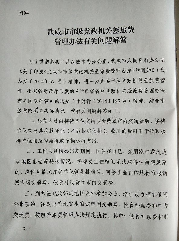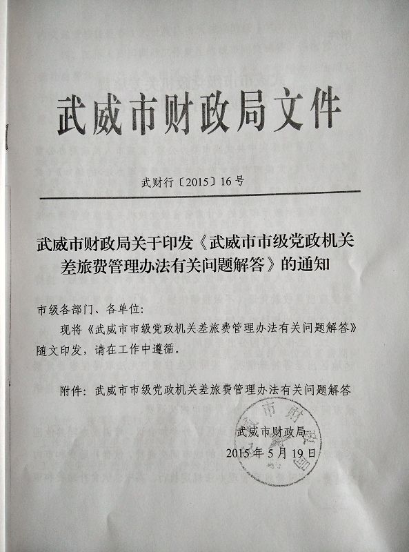 <轉(zhuǎn)發(fā)>武威市市級(jí)黨政機(jī)關(guān)差旅費(fèi)管理辦法有關(guān)問(wèn)題解答