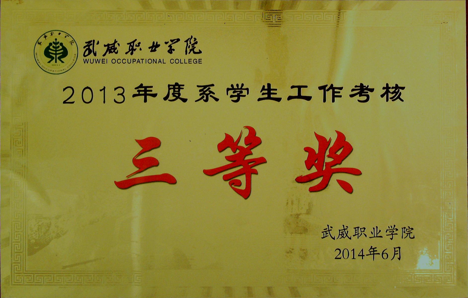 2013年度系學(xué)生會(huì)工作考核中三等獎(jiǎng)