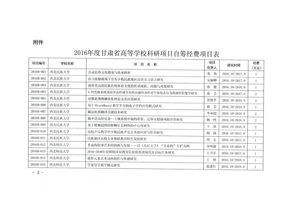 甘肅省教育廳關(guān)于下達(dá)2016年度甘肅省高等學(xué)??蒲许椖孔曰I經(jīng)費項目的通知