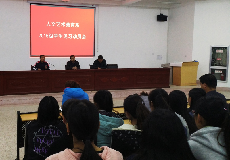 為進一步提高學生實踐能力,掌握見習工作流程和相關要求。在4月8號下午,人文藝術教育系在勵勤樓階梯教室舉行了“2015級學生見習安排工作會議”。系書記胡靜峰、教學秘書曹禎、輔導員李欣、各班班主任與15級全體學生參加了會議。