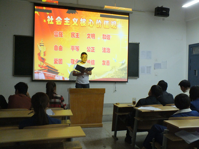 為深入學(xué)習(xí)貫徹黨的十八大精神和習(xí)近平總書(shū)記系列講話(huà)中關(guān)于大力推進(jìn)社會(huì)主義核心價(jià)值體系建設(shè)的要求,積極響應(yīng)院團(tuán)委的號(hào)召,我系于4月14日組織師生在4號(hào)教學(xué)樓313教室開(kāi)展了“社會(huì)主義核心價(jià)值觀引領(lǐng)我成長(zhǎng)”主題演講比賽。