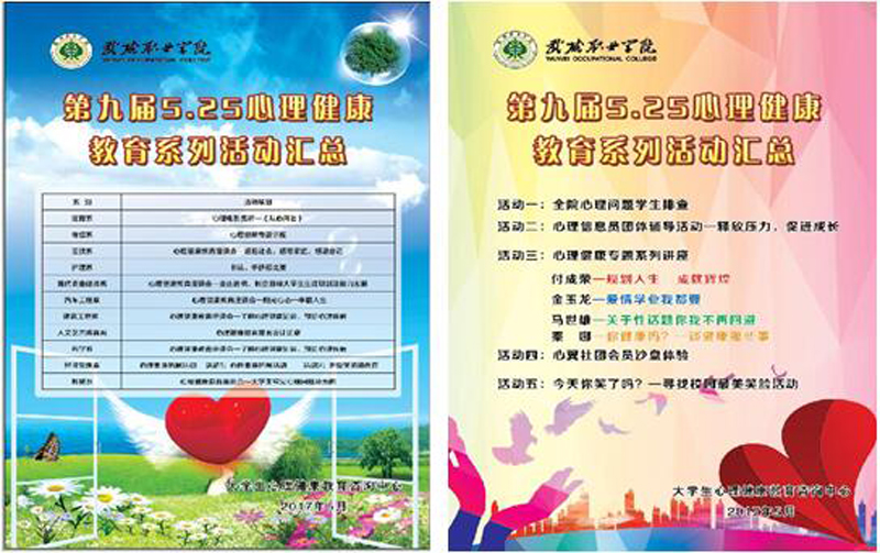 為貫徹落實習近平總書記在全國高校思想政治工作會議上的講話和教育部《關于加強普通高校大學生心理健康教育工作的意見》等文件精神,迎接“5·25”全國大學生心理健康日,提高我院學生心理健康水平,展現(xiàn)我院學生積極向上的精神風貌。學生工作處于5月20日至6月20日開展了第九屆“5·25”心理健康宣傳月系列活動。