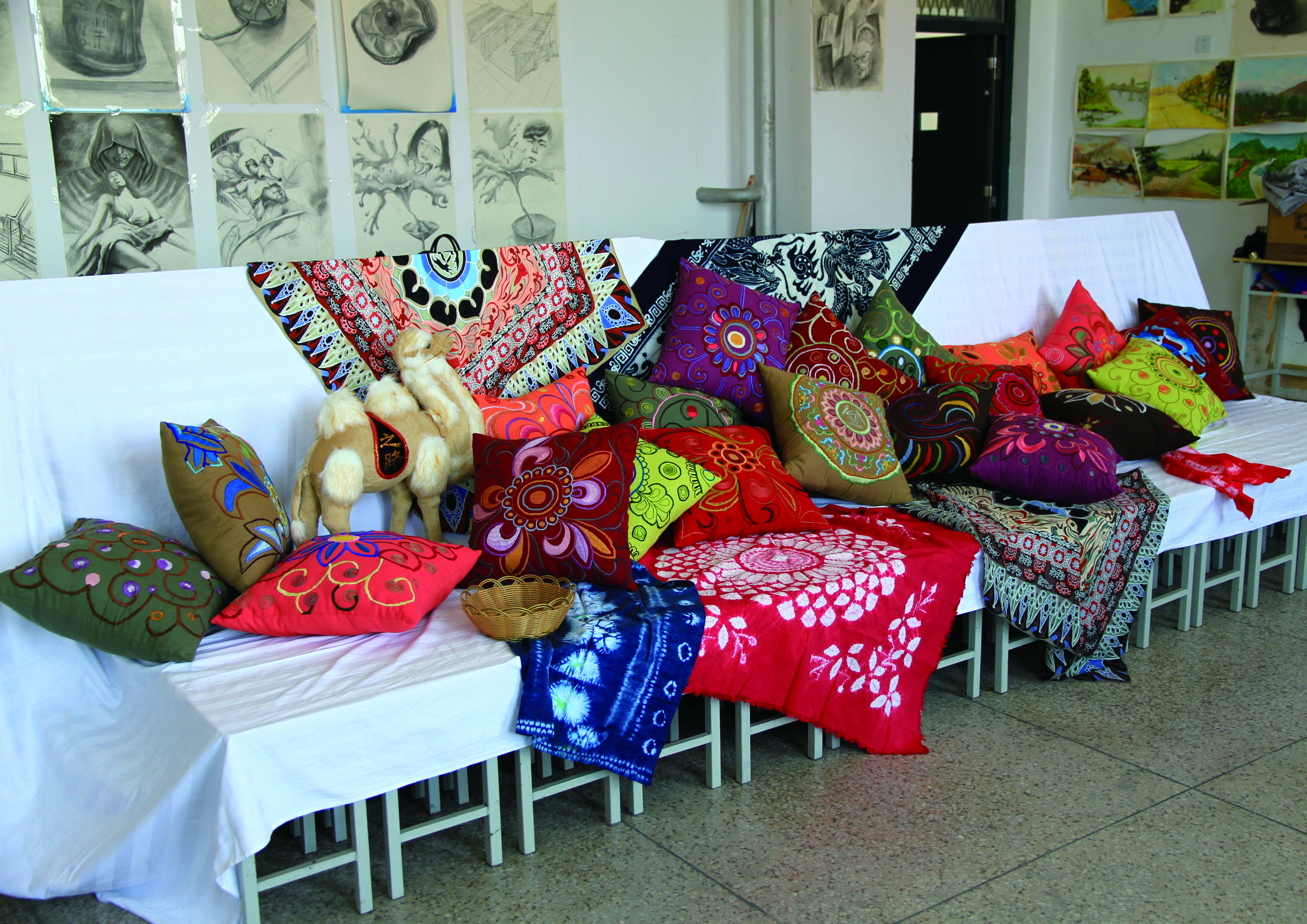 恰逢“一帶一路”偉大戰(zhàn)略構(gòu)想開展之際,近日,為迎接“第二屆敦煌絲綢之路國際文化博覽會”的勝利召開,人文藝術(shù)教育系組織學前教育專業(yè)師生積極研發(fā)創(chuàng)意旅游作品,參加由省婦聯(lián)、省教育廳、省高校工委組織的“第一屆女大學生巧手創(chuàng)意大賽”。學院人文藝術(shù)教育系利用武威地處絲綢之路經(jīng)濟帶“咽喉”的區(qū)位優(yōu)勢,挖掘古絲綢之路文化,激發(fā)學生創(chuàng)新創(chuàng)業(yè)能力,以精美的敦煌壁畫藻井圖案為造型元素,用刺繡的手法設(shè)計制作裝飾、實用效果極佳的抱枕等紡織作品,作品傳承了古絲綢之路文化,承載著廣大師生對敦煌藝術(shù)的向往和追求。參賽作品展現(xiàn)了人文藝術(shù)教育系學生的精美刺繡工藝和獨特的創(chuàng)意手法,體現(xiàn)了人文藝術(shù)教育系特色教學成果。據(jù)悉,參賽優(yōu)秀作品將在“第二屆敦煌絲綢之路國際文化博覽會”上展出。