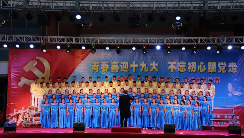在持續(xù)半個(gè)月的合唱訓(xùn)練中,我系參加大合唱的102名同學(xué)和6位老師充分的準(zhǔn)備,以積極飽滿的態(tài)度投入到本次大合唱比賽的訓(xùn)練中,付出了大量的精力,放棄了許多休息時(shí)間,展現(xiàn)出了不怕吃苦,堅(jiān)持不懈,自強(qiáng)自信的精神。比賽中,隊(duì)員們齊聚在黨旗下,著裝整齊,精神飽滿,以高昂的熱情、嘹亮的嗓音唱出了對(duì)黨的擁戴,對(duì)未來的憧憬,贏得了評(píng)委及現(xiàn)場觀眾的熱烈掌聲。