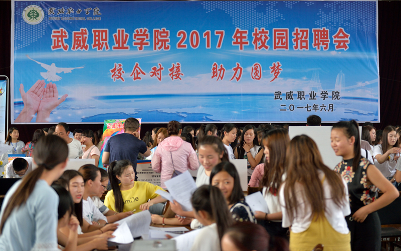 為切實(shí)做好學(xué)院畢業(yè)生就業(yè)工作,大力構(gòu)建畢業(yè)生與用人單位的交流平臺(tái),積極為用人單位輸送應(yīng)用型人才,6月27日上午,在學(xué)院大禮堂舉行了我院2017年校園招聘會(huì)。此次招聘會(huì)參會(huì)企業(yè)共80多家,其中武威當(dāng)?shù)仄髽I(yè)12家,省內(nèi)企業(yè)33家,外地企業(yè)40多家。招聘會(huì)提供就業(yè)崗位1500多個(gè),招聘崗位涉及了機(jī)械制造、信息工程、能源化工、醫(yī)藥衛(wèi)生、經(jīng)濟(jì)管理、學(xué)前教育、市場(chǎng)營(yíng)銷(xiāo)、現(xiàn)代農(nóng)業(yè)等行業(yè),參加應(yīng)聘學(xué)生近3000人次,現(xiàn)場(chǎng)意向性簽約800多人。