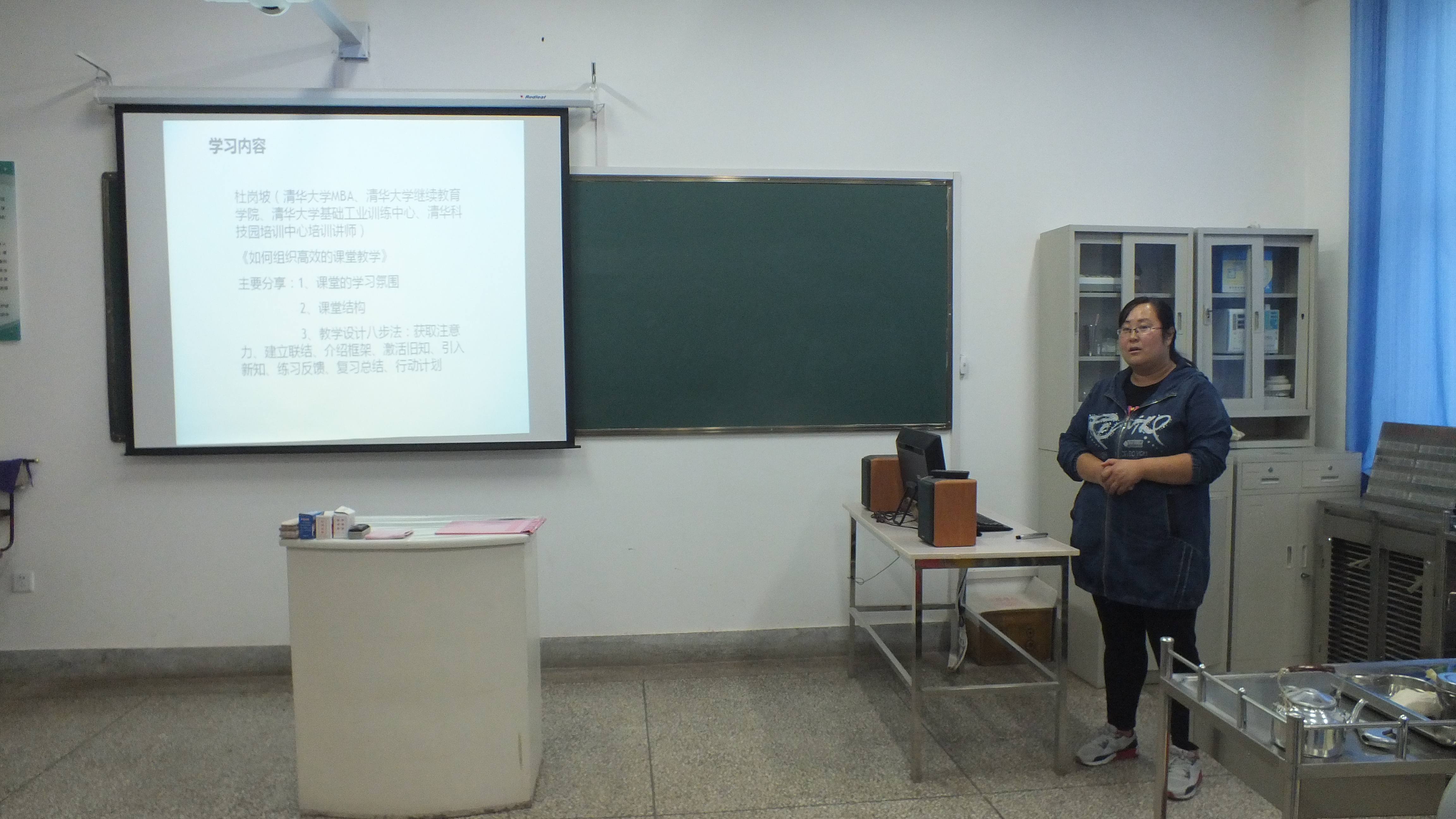 去北京參加全國職業(yè)院校教練式教學(xué)方法與課堂教學(xué)設(shè)計高級研修班的梁育霞老師主要匯報了學(xué)習(xí)到的教學(xué)方法和課堂設(shè)計,一堂精彩的課程要有一個恰到好處的課堂設(shè)計,好的課堂設(shè)計又要結(jié)合好的教學(xué)方法,鼓勵老師們多與經(jīng)驗豐富的老師們交流經(jīng)驗提高課堂設(shè)計水平。