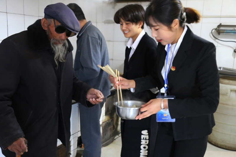上午八點半,醫(yī)學(xué)技術(shù)與信息管理系各位黨員、入黨積極分子、團學(xué)干部、師生代表在廚房為老人包餃子,并整理被褥;康復(fù)治療專業(yè)教師黨員高萬飛為老人講解“如何健康養(yǎng)生”;系團總支為老人們送上毛巾、牙膏、香皂等日常生活用品;愛牙協(xié)會的志愿者為老人,進行牙齒檢查,講解如何愛護牙齒;中醫(yī)養(yǎng)生協(xié)會的志愿者為老人們測血壓,演示常用的按摩方法。中午時分,老人們吃著熱氣騰騰的餃子,看著全系師生代表為老人們準備的精彩節(jié)目,臉上洋溢著幸福的笑容。
