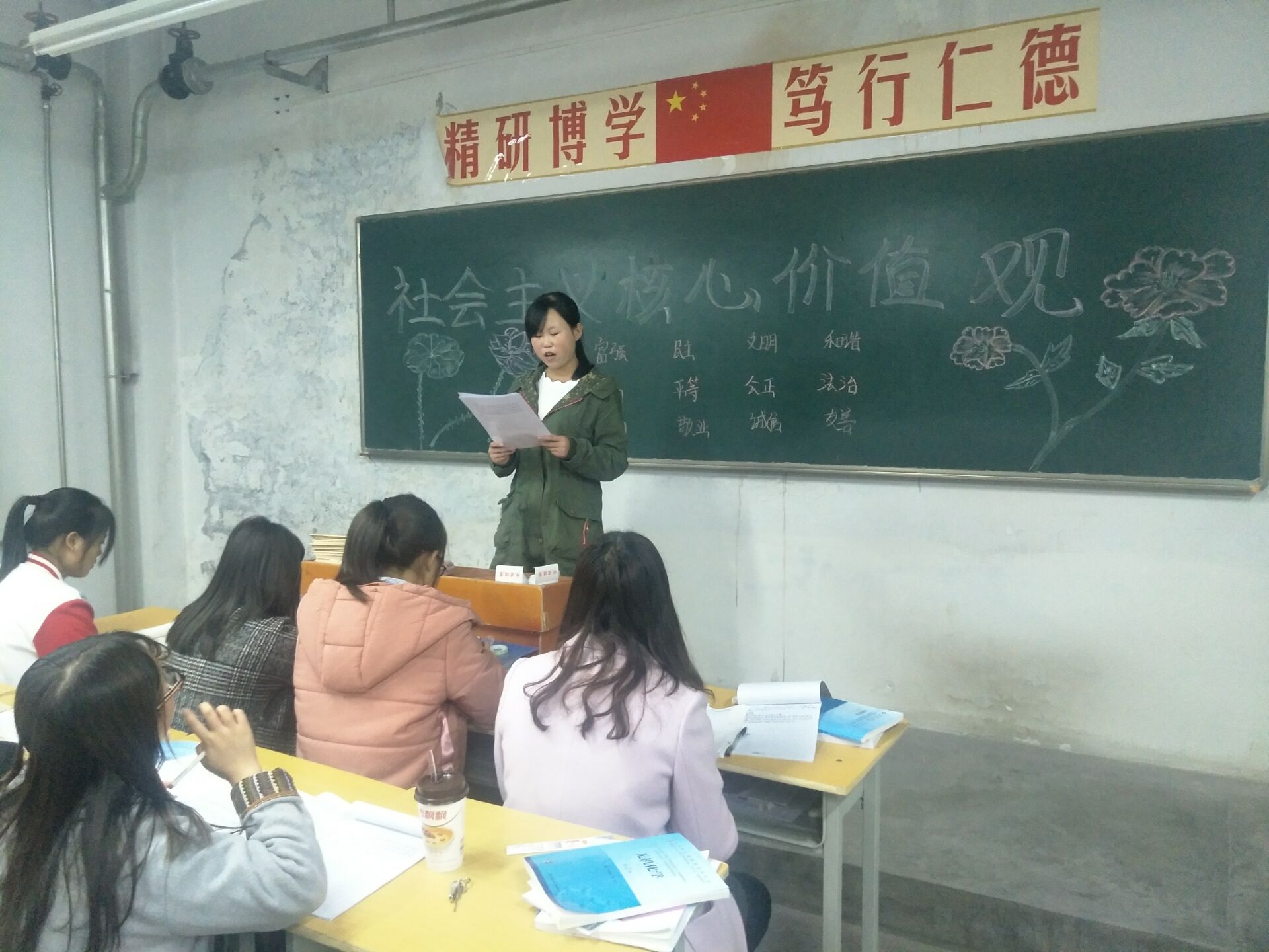 ?根據(jù)藥學(xué)系對社會主義核心價值觀主題宣傳教育創(chuàng)建工作的安排,11月6日,利用晚自習(xí),17級藥學(xué)5班召開主題班會,深入學(xué)習(xí)宣傳社會主義核心價值觀的概念內(nèi)涵、發(fā)展歷程、價值意義、基本原則、踐行路徑、實踐活動和“24字人知人曉”等內(nèi)容。同時,將“24字內(nèi)容”在教室、宿舍張貼宣傳,做到社會主義核心價值觀進教室、進宿舍、進頭腦。通過學(xué)習(xí),對“24字人知人曉”工程做到了班級全覆蓋,班級學(xué)生對社會主義核心價值觀內(nèi)涵的認識和理解進一步加深。今后,將根據(jù)系上安排,不斷將培育和踐行社會主義核心價值觀工作引向深入。