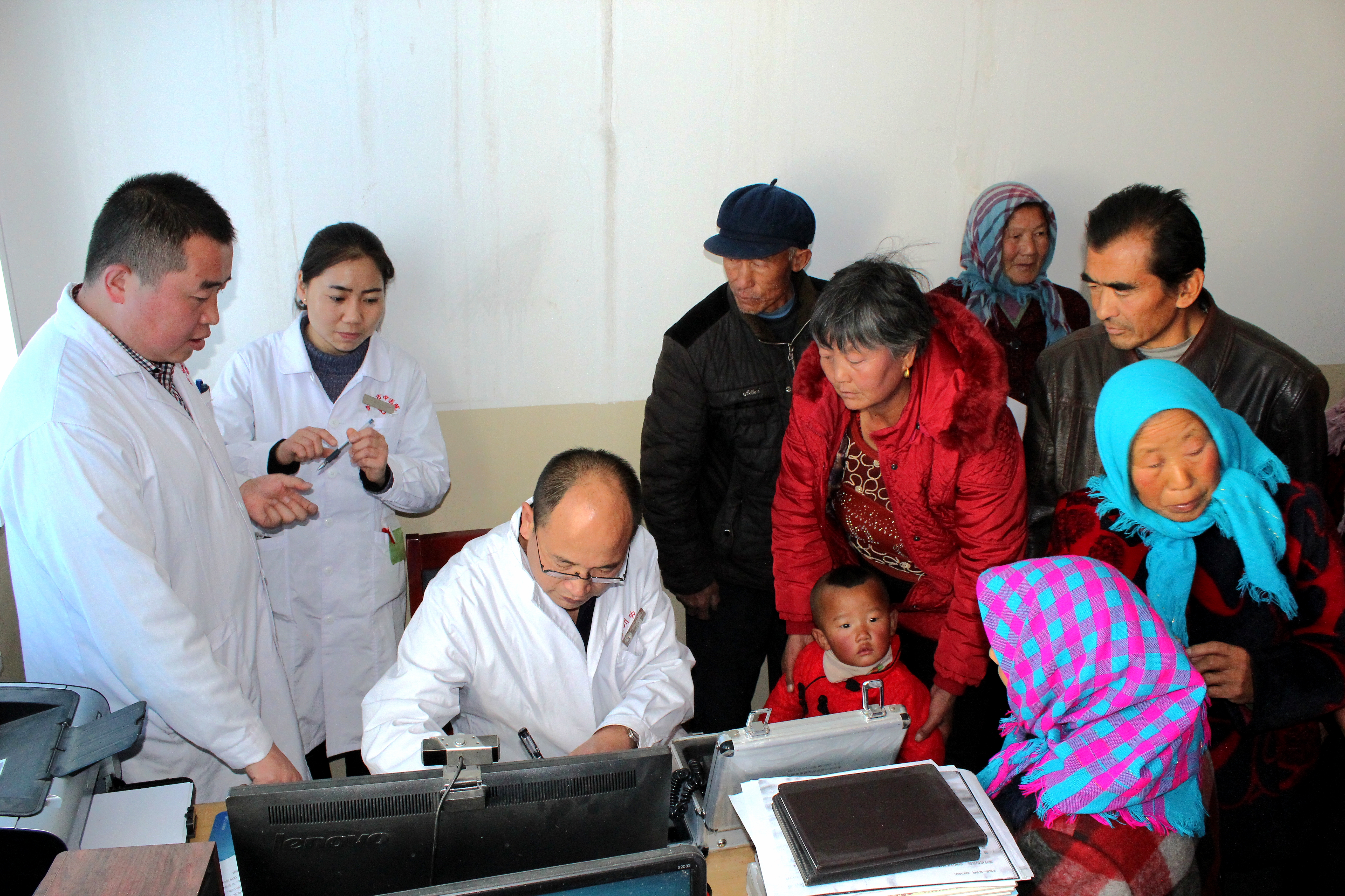 在衛(wèi)生院內(nèi)義診現(xiàn)場(chǎng),由于診室面積所限,患者們遵照護(hù)士安排意見,按病種分成兩組排隊(duì)候診。陶醫(yī)生為患有干眼癥、結(jié)膜炎、白內(nèi)障、青光眼、翼狀胬肉、斜視等眼科疾病的患者開展常規(guī)檢查,并開具處方,提供健康用眼衛(wèi)生和治療方案。王醫(yī)生為患者提供耳鼻喉常規(guī)檢查服務(wù)。對(duì)于患有中耳炎、慢性咽炎、耳鳴耳聾、過敏性鼻炎等疾病的患者,王醫(yī)生現(xiàn)場(chǎng)給予用藥指導(dǎo)和今后的治療方案。